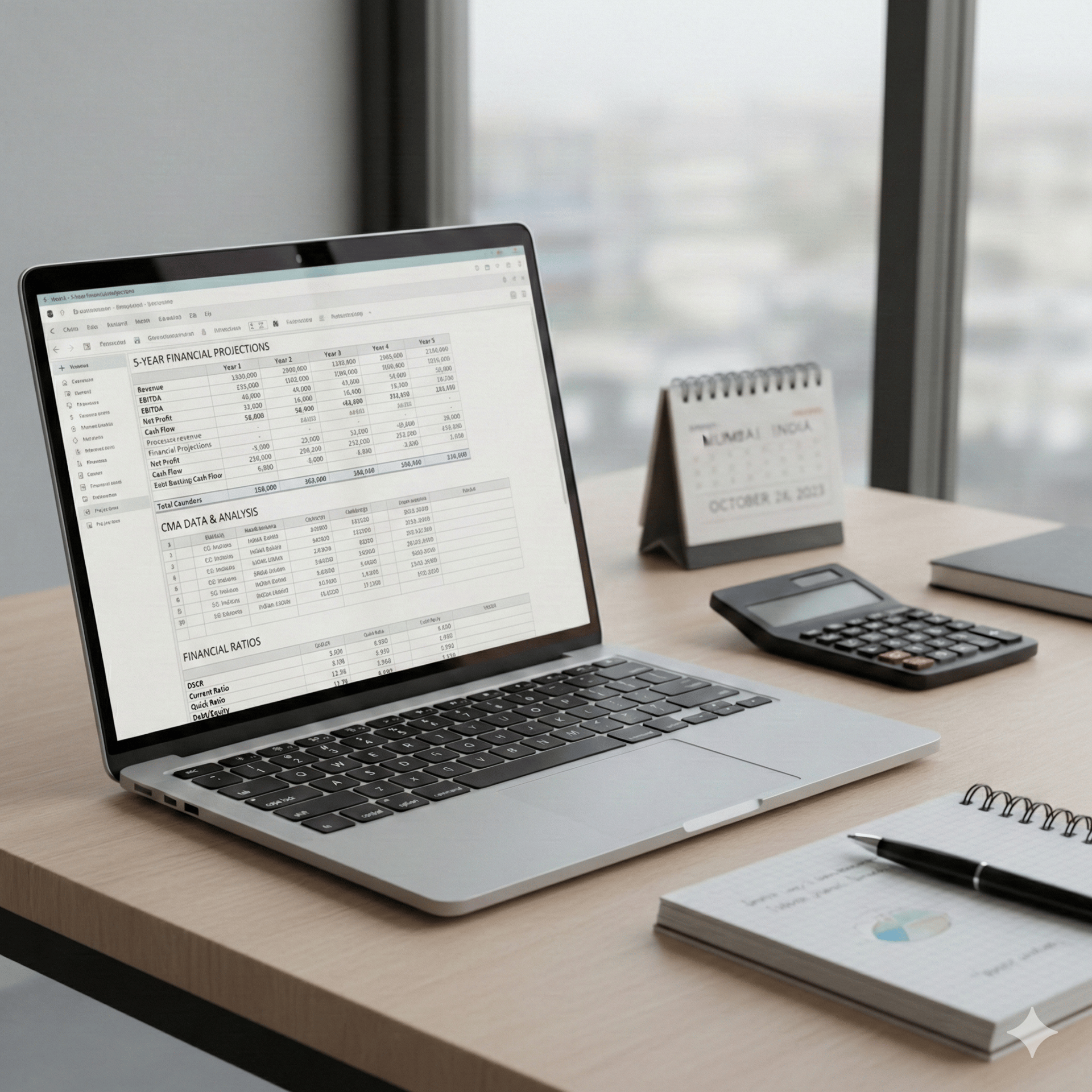 A structured Excel system to prepare bank-ready CMA data,ratios, and 5-year projections for loan appraisal.